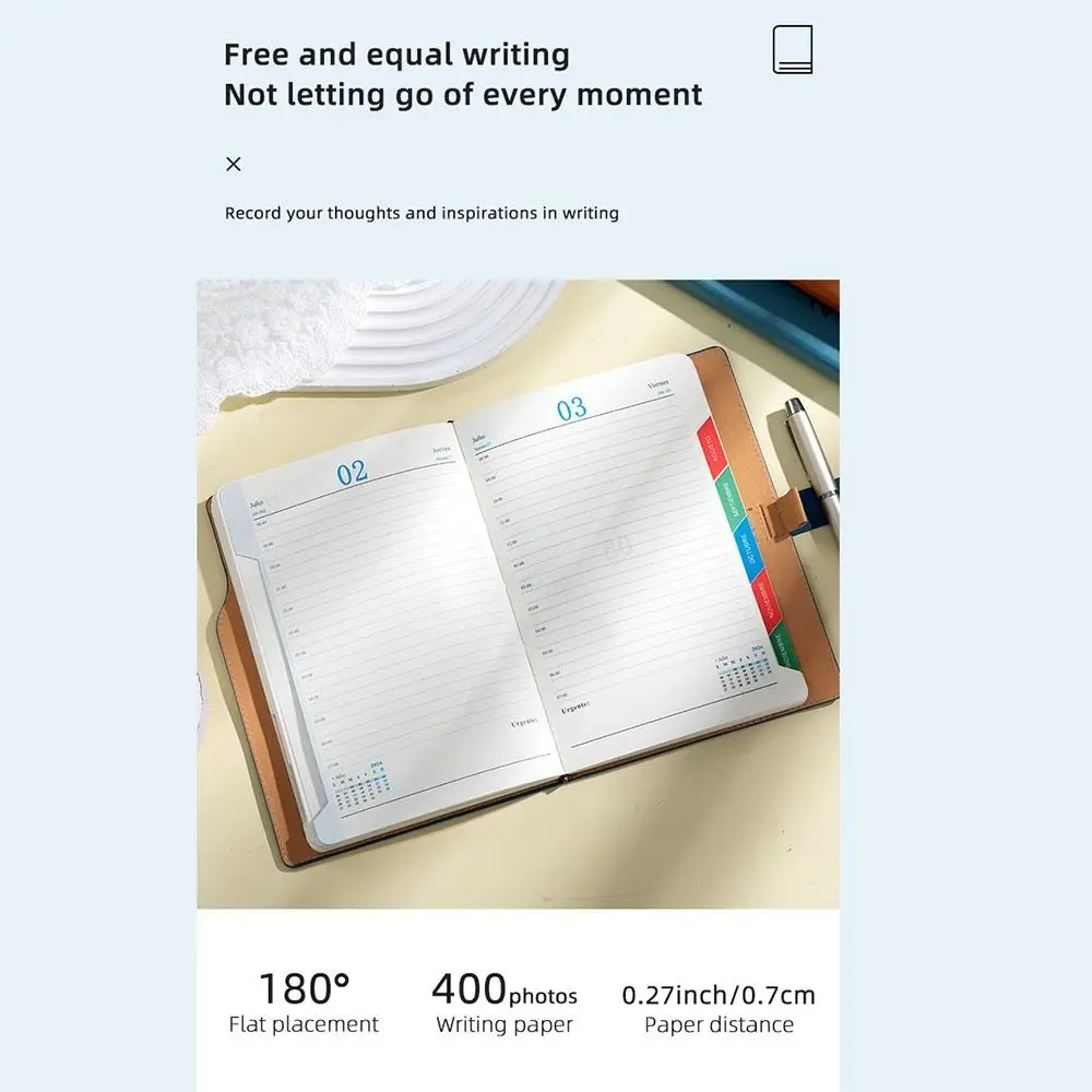2.This daily notebook uses premium and thickened paper, and you will have smooth writing experience. While going out, you can carry this notebook with a pen, because it has pen insertion design.